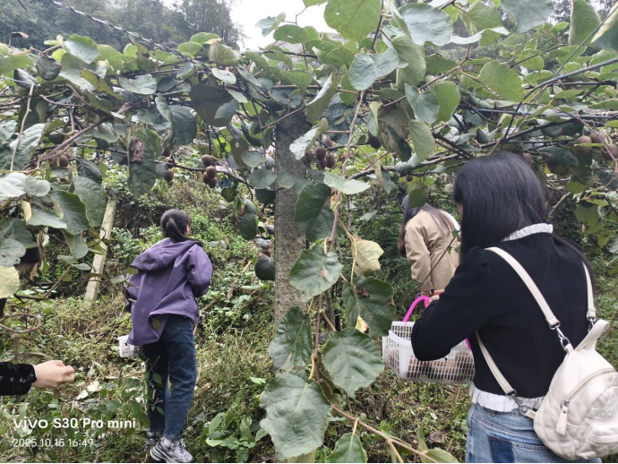 随后的猕猴桃采摘体验环节更添乐趣。在当地农户的指导下,教职工们走进挂满果实的猕猴桃园,亲手挑选、采摘成熟的果实,感受劳作的喜悦。此次采摘不仅让大家体验了农耕乐趣,更以实际行动助力农产品销售,践行“消费助农”理念,用微小力量为乡村产业振兴注入活力。