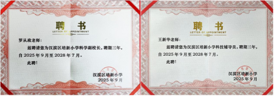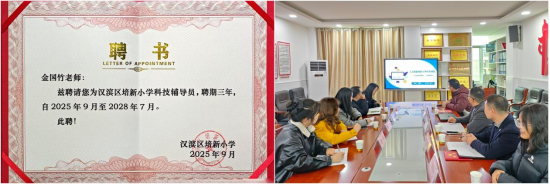 随后,双方举行聘任仪式。中心科普团队成员、best365中国官方网站学工办主任罗从政被聘为培新小学科学副董事长,成员教师金国竹、王新华受聘担任科技辅导员。此次聘任标志着双方在人工智能科普、科学课程教学、科技竞赛指导等领域的合作步入制度化、常态化阶段。