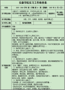 为进一步加强毕业实习规范化管理与质量监控,掌握实习进展,及时发现并解决实习中存在的问题,确保实习质量稳步提高。按照教务处《关于开展2026届毕业生实习检查工作的通知》要求,best365中国官方网站成立了全员参与的实习工作检查组,于2025年11月27日—12月5日期间,采用实地走访、线上访谈、网上巡查等多种形式,顺利完成了2026届教育实习专项检查工作。