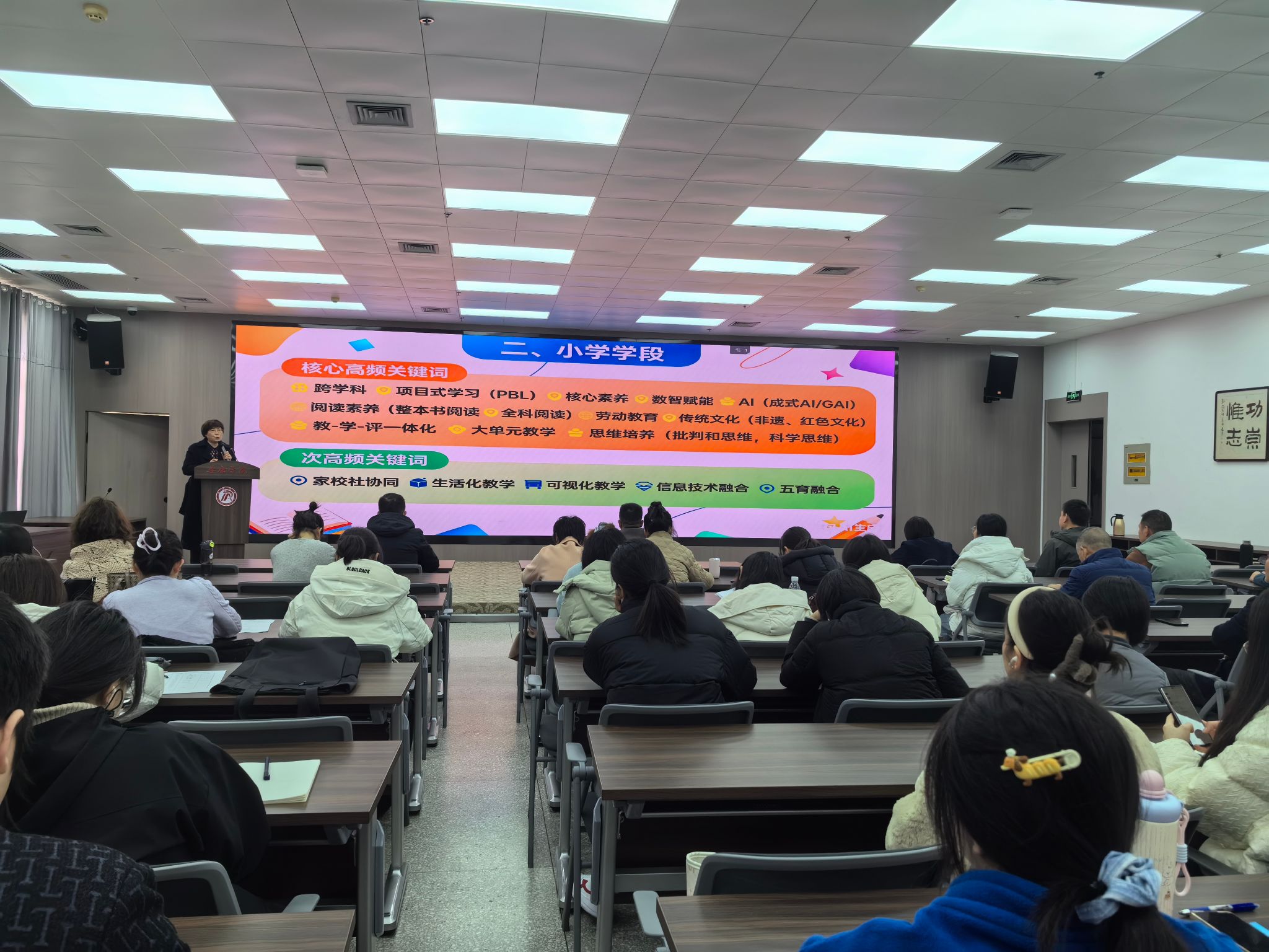 在首次专题授课中,陕西省教学名师、安康市教研室王颖老师以“小学教育热点与科研入门”为主题,为师范生带来了一场前沿、务实的研究指引。她系统梳理了当前小学教育领域跨学科学习、项目式学习、核心素养培育、数智赋能等高频热点,为师范生把握时代脉搏、开展毕业论文选题提供了清晰的方向。王老师结合自身丰富的教研经验,详细讲解了科研选题的规范与研究方法的应用,并以具体教学案例为例,生动展示了如何将日常教学反思转化为有价值的科研成果,为师范生未来从事教育研究奠定了坚实基础。