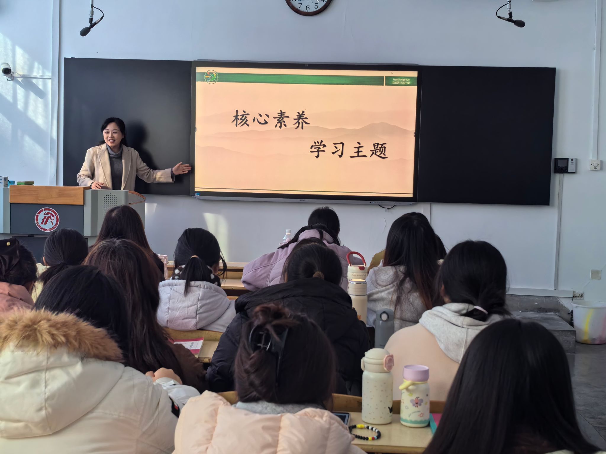 全国优秀教师、安康市道德与法治教研员卓小瑜老师以《面向2035:道德与法治教师必备的课程理解力与创新力》为题,高瞻远瞩地剖析了未来教育趋势对道德与法治教师核心能力的新要求。安康小学德育研究会会长、汉滨区小学董事长、特级教师肖静老师立足《核心素养导向下的小学道德与法治新教材解读与教学建议》,为员工们提供了驾驭教材、落实素养的实用路径。汉滨区道德与法治研究员陈婵老师则从《以劳促品德 以动促成长》的角度,生动阐释了劳动教育与品德培养有机结合的创新实践。安康市瀛湖小学副董事长郭娟老师聚焦《小学道德与法治教师教学技能》,分享了课堂管理、活动组织、评价反馈等方面的实战技巧。小学道德与法治省级教学能手、安康市汉滨小学政教处主任胡苗苗老师,更是以《如何做一名幸福快乐的小学道德与法治教师》为主题,传递了宝贵的职业信念与积极从教的心灵力量。