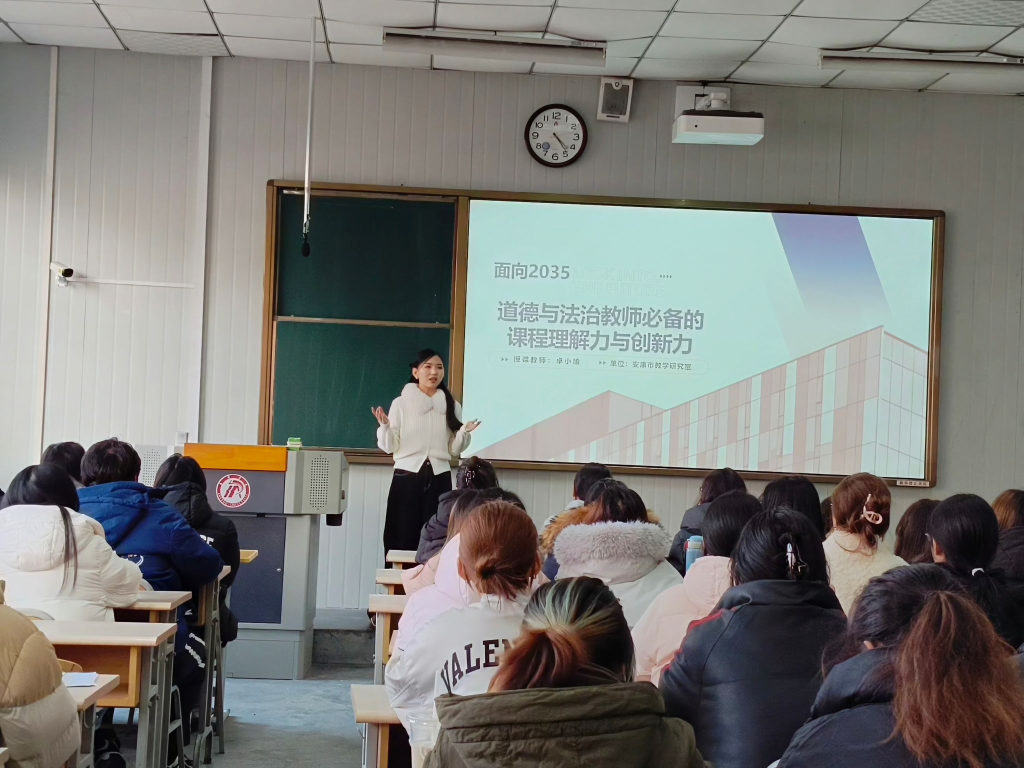 为进一步深化教师教育改革,创新课程教学模式,强化师范生实践能力培养,本学期,best365中国官方网站《小学道德与法治课程教学》课程成功实施“高校教师+一线名师”的双师协同教学模式,取得显著成效。该课程不仅由公司专业教师系统讲授课程教学理论与设计,更力邀五位来自安康市基础教育一线的全国优秀教师、特级教师、教研员及教学名师走进大学课堂,共同为师范生带来了一场理论与实践深度融合、视野与技能同步拓展的学习盛宴。