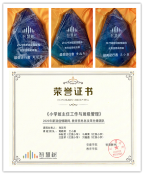 录课过程恰逢疫情,课程团队成员在认真防疫的前提下辛苦录课,得到了录课平台的高度认可,平台专门为课程团队颁发了“教育信息化改革先锋团队”证书和奖杯。