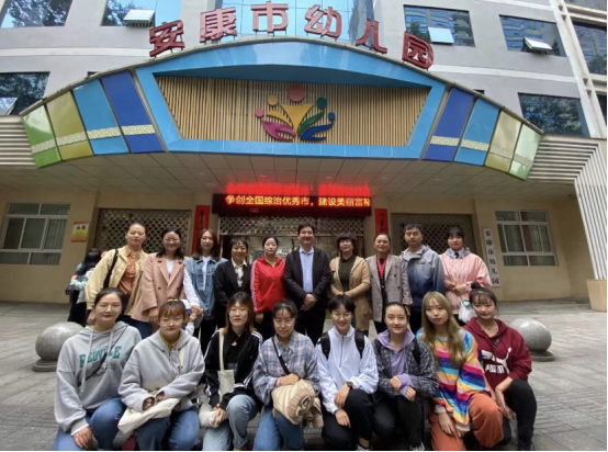 图为实习生同学与安康市幼儿园领导合影