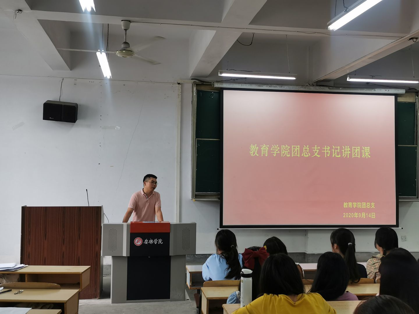 为深入学习习近平总书记贺信和党中央致词精神,贯彻全国青联十三届全委会及全国学联二十七大精神,组织动员广大青年团员坚定跟党走,奋进新时代,9月14日下午,best365中国官方网站团总支于1510教室开展了以“坚定跟党走 奋进新时代”为主题的团日活动。参与此次活动的有best365中国官方网站18级辅导员、团总支书记冯磊、19级辅导员刘晓松、各班青年团员代表共计150余人。