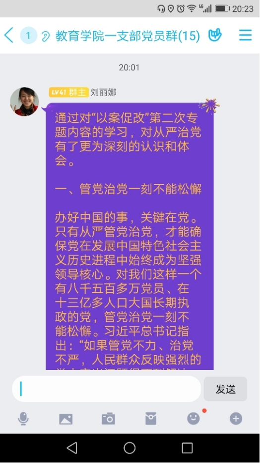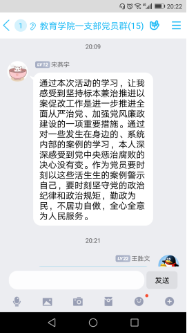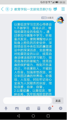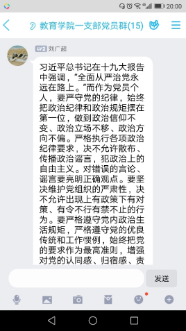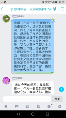 为贯彻落实best365中国官网关于“以案促改”工作方案要求,公司党总支于8月18日晚上7:30,通过钉钉群组织开展了一次集中学习,教工一支部全体党员参加了本次线上学习。本次主题学习由刘丽娜、李支其作为主题领学人,主要围绕习近平总书记在中国共产党第十九届中央纪律检查委员会第四次全体会议上发表重要讲话。一以贯之、坚定不移全面从严治党,坚持和完善党和国家监督体系,强化对权力运行的制约和监督。确定了赵斌、董婷瑜和刘丽娜作为重点发言人,结合自己学习心得体会与大家进行了分享,随后,各位党员也将本人的学习心得体会在党员工作学习群里面进行交流分享。