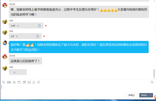 其次,参与活动的党员老师纷纷表示两位老师的教学经验分享很全面,不仅课程内容条理清晰,而且通过多种途径提高员工的参与度,对不同课程通过不同新媒体技术进行处理,而取得的较好教学效果及其经验值得大家学习和借鉴,并将在即将进行的第三批线上教学中不断创新、改进和发扬光大!