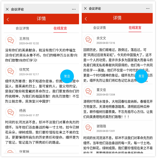 ——缅怀人民英雄,弘扬民族精神。入党积极分子李金在中华英烈网留言:“人民英雄永垂不朽!悲痛、感恩让我们更爱祖国母亲。革命先烈谱写了的赞歌我会牢记心中!幸福生活来之不易,新时代青年是幸运的一代,也是责任重大的一代,!我会更加严格要求自己,弘扬民族精神,为国家建设贡献力量。”