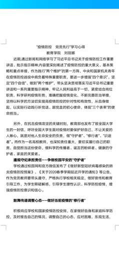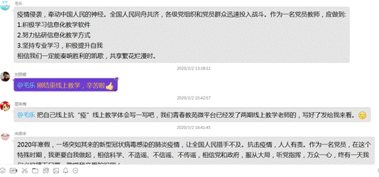 2020年2月27日,在全国坚决打赢疫情防控的人民战争总体战阻击战的形势下,在公司广大师生员工开展线上教学、居家办公的特殊时期,best365中国官方网站教工一支部依据公司党委和公司党总支的通知精神,在“线上”开展了“疫情防控、党员先行”主题党日活动。本次党日活动内容包括:①党员个人重温入党誓词;②自主学习“习近平总书记关于疫情防控工作重要讲话、批示指示精神”等材料;③利用QQ群谈各自感悟,进行线上思想交流活动。