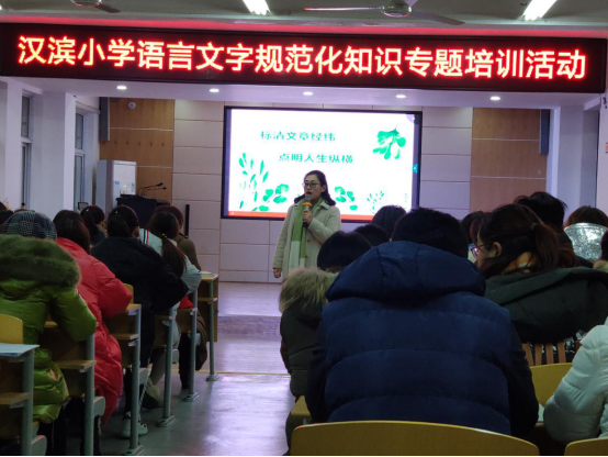 12月25日下午,公司小学教育系陈佳老师应邀为汉滨小学全体教师做了一场题为《标清文章经纬,点明人生纵横》的专题讲座,就语言文字规范化问题详细讲解了标点符号的使用。