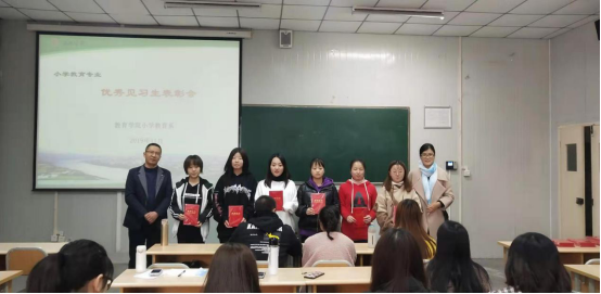 李支其老师对同学们在见习期间的情况做出了总结,认为在本学期的见习活动中,五个班的同学们都能按照指导老师的要求参与见习工作,态度积极认真、虚心学习,受到了见习小学领导、老师们的好评。本次受表彰的优秀见习生是经过班级的评选和指导老师的推荐产生的,希望同学们再接再厉,发挥带头示范作用,争取学业上更有进步,努力提升专业水平和实践能力。