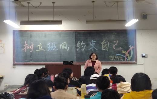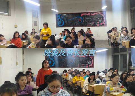 在同学们充分讨论后,班委和各宿舍舍长分别进行了表态发言,辅导员对同学们的发言作了总结,鼓励同学们坚定信心,牢固树立班兴我荣,班衰我耻,以班为家,荣辱与共的理念。