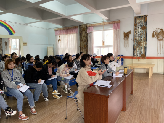 在幼儿园的安排下,于周五早上,同学们从大、中、小班各推选出了一节研讨课进行观摩研讨,由幼儿园骨干教师进行点评与指导,员工自身找出问题,一起畅所欲言,收获颇多。