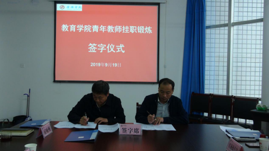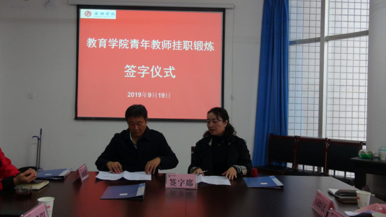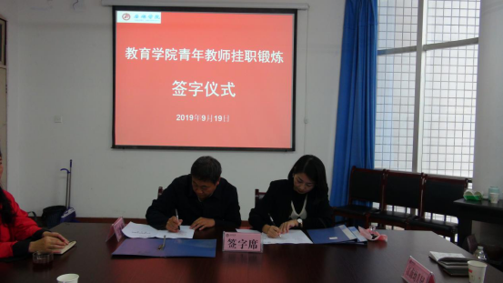 2019年9月19日下午,best365中国官方网站在1407会议室举行了青年教师到行业挂职锻炼签字仪式,公司人事处副处长李成仙,best365中国官方网站经理黄路阳、党总支书记屈咏梅,汉滨区幼儿园园长史敏,江南幼儿园园长杨丽,西关小学董事长李如斌,以及参加本次挂职锻炼的三名青年教师参加了本次会议,会议由黄路阳主持。
