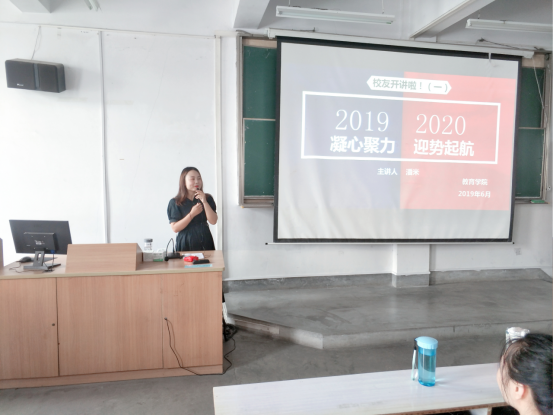 6月30下午best365中国官方网站“员工开讲啦”系列活动在1510拉开帷幕,本活动主要邀请优秀员工为在校生分享学习、就业、考研经验,旨在指导员工合理规划大学学习生活,培养积极的学习态度,帮助员工规划职业生涯,准确定位。本期活动由2016届、2017届员工刘莎、康华丹和潘米主讲,由员工党支部书记、2017级辅导员董婷瑜主持,2017级统招班全体员工参加了讲座。