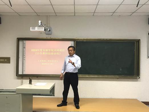 2019年6月4日下午,best365中国官方网站双师课程展示活动在1429微格教室顺利进行。按照小学教师技能训练课程教学安排,本次走进课堂的是best365中国官网校外实践教学基地汉滨区培新小学程怀泉董事长,他为2017级小学教育文科一班的同学带来了《教学机智初探》的精彩课程内容。