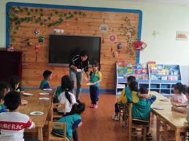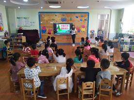 见习过程中,同学们被分配到固定的班级,从早上7:40幼儿入园开始,晨检、早操、游戏、玩教具制作、课堂观摩、公开课的评课议课,到下午5:10幼儿离园,参与每天的教学活动,同学们真正将理论运用到教育实践活动中。