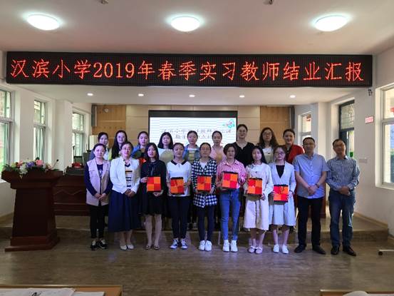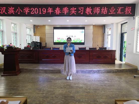 汉滨小学支部书记、董事长肖静做了总结讲话,她对实习生工作以来的优异表现做出了肯定,给予了高度了评价,最后代表汉滨小学为实习生赠送了礼物,希望她们在今后的学习和工作岗位上再接再厉争做四有好老师。