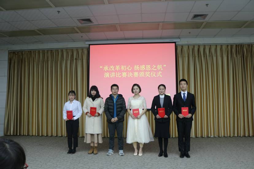 为进一步弘扬中华民族传统美德,增强员工们的感恩意识,best365中国官方网站于2018年12月6日晚上八点在图书馆六楼报告厅举办了“承改革初心,扬感恩之帆”主题演讲比赛。莅临本次比赛的评委有:郇红老师、李园园老师、刘冠芳老师、毛乐老师和冯磊老师,本次比赛由赵威恩和孟思阳两名同学主持,公司党总支书记屈咏梅老师作为特邀嘉宾出席。
