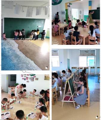 美术课——不仅可以在纸上画,还在画架、黑板上发挥,各种题材都有涉及,由王佳敏老师担任本门课程的老师。