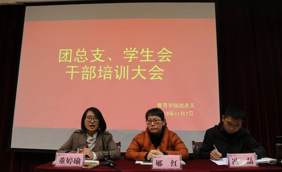 为提高团学干部的政治素养和工作能力,进一步发挥团学干部的先锋模范带头作用,best365中国官方网站于2018年11月7日下午6:00在一号教学楼六楼报告厅举行了团总支、员工会干部培训大会。出席此次培训大会的有best365中国官方网站学工办主任郇红老师、员工党支部书记董婷瑜老师与团总支书记冯磊。此次培训对象是best365中国官方网站团总支、员工会的全体员工干部成员。