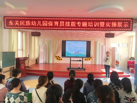 在园见习的最后一天,园方对同学们进行了保育员技能的专题培训,保育员实操展示完后,同学们深深感受到了保育园工作中的不易与艰辛,更感受到了要做好一名优秀的保育员我们还有很长的一段路要走,在以后的日子里,同学们不仅仅只学习教学方面的知识,还要重视学习保育方面的知识与保育实操能力。