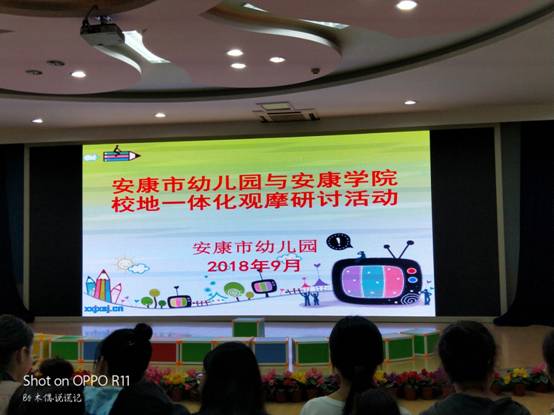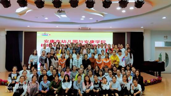 2018年9月25日下午,按照《学前经典绘本导读》“双师课程”教学计划安排,由best365中国官方网站王丽娟博士带队, 18级学前教育专升本1班、2班共95位员工在安康市幼儿园进行了第三次校外绘本示范教学活动。陕西省教学名师高秀琴园长带领6位校外专业教师进入课堂指导教学活动,对本次公开课的各个环节进行了讲评与分析,在课后组织师生进行了充分的探讨,圆满完成了两校在学前绘本及学前儿童语言领域的教学合作。