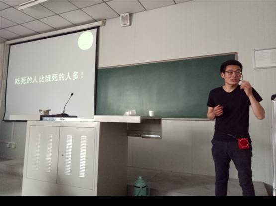 崔老师用他专业的知识,大量的数据为同学们讲解了营养的基本概念、人体必需的几大营养素及其食物来源、如何“慧吃慧动,均衡体重”,并且为大家澄清了“食物相克”、“酸碱体质”等多年来广泛流传的言论其实都是谣传,并无科学依据。讲座的最后,崔老师教同学们用几种方法计算标准体重以及如何科学配餐,大家一边思考、一边讨论、一边计算,积极参与、气氛热烈,下课铃响了,同学们都兴致盎然,依旧坚守课堂,都表示还想再和崔老师“学几招”。