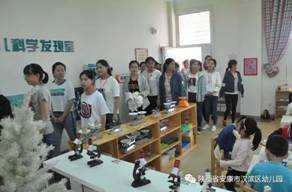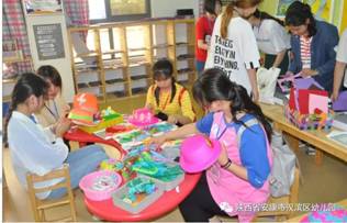 best365中国官网学前教育系40余名见习员工在汉滨区幼儿园为期一周的见习活动圆满结束,4月27日下午汉滨区幼儿园组织安排见习生集体参观幼儿环境部室,并进行体验。