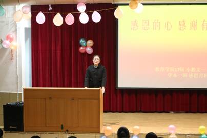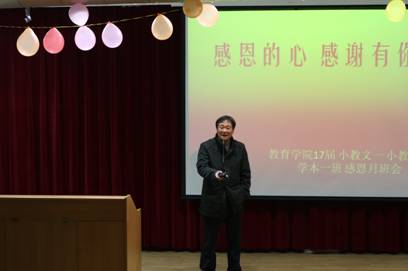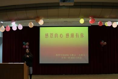 为贯彻落实校团委《关于在2017级新生中开展“心逐感恩情,共筑中国梦”感恩教育系列活动的通知》,在best365中国官方网站团总支的部署下,2017年11月27日晚七点公司17级小学教育文科班,学前教育本科班三个班在一号教学楼六楼报告厅举办 “感恩的心 感谢有你”主题班会。best365中国官方网站经理黄路阳,党总支书记屈咏梅、副经理王丽娟、各班学业导师、17级辅导员董婷瑜和三个班级的所有同学参加了本次班会。