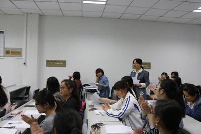 比赛结束后,评委老师点评了讲课中存在的优点以及不足。刘莉强调应当讲课时应该以员工为主体,课堂上要引发员工主动思考,在课程导入,板书,讲课三方面要有亮点。董婷瑜老师指出了选手们的不足之处,提醒同学们应该勤练板书和普通话。