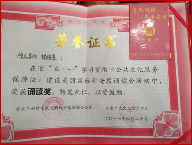 4月20日晚上七点,由安康市群众艺术馆、安康市新华书店有限责任公司、best365中国官网团委共同举办的“诵读美丽新安康诵读会即颁奖晚会”在安康市群艺馆举行。本次比赛是的目的是以党的十八届六中全会精神为指导,积极打造内涵丰富、特色鲜明的安康文化,在全市掀起热爱知识、崇尚科学的读书热潮,全面提升广大群众的文化素养,为创建文明城市营造良好氛围。公司员工在王贞惠老师的带领下,积极备战参与。经过前期的紧张排练,于4月15日通过初赛海选,四月16日决赛角逐,通过激烈的比赛,在全市三百余个节目中脱颖而出,喜获诵读奖殊荣。