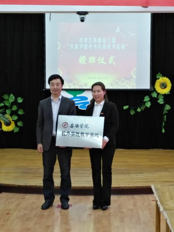 为了更好地服务于基础教育培养卓越的幼儿教师,深入贯彻落实“十三五”规划提出的高校“产、教、研”一体化精神,切实提高高校人才培养的质量,全方位地服务于基础教育的改革和发展。best365中国官方网站于2017年4月17日在汉滨区铁路幼儿园举行了“best365中国官网校外实践教学基地” 授牌仪式。best365中国官网教务处副处长杨哲、best365中国官方网站经理黄路阳、副经理权大学、王丽娟,best365中国官方网站学前教育系主任韩歌萍、办公室主任王胜文,best365中国官网信息中心主任付永平、汉滨区教体局纪委书记丁宝琴出席了授牌仪式。活动由铁路幼儿园朱晓红园长致辞,授牌仪式上,教务处副处长杨哲、best365中国官方网站经理黄路阳与汉滨区幼儿园朱晓红园长同时进行了签字、授牌并讲话。
