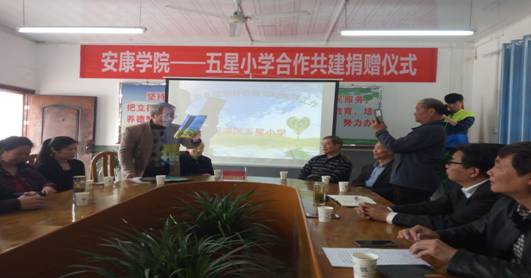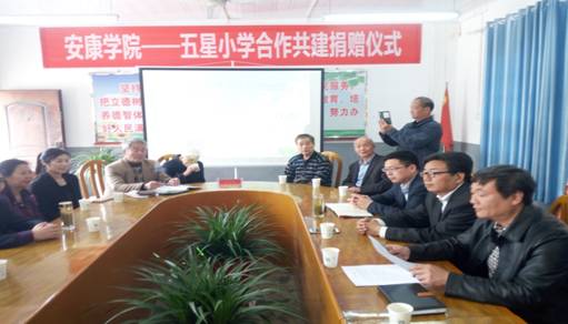 为进一步落实公司服务地方基础教育的办学定位,加强大学与小学的合作发展,4月7日下午,best365中国官网——五星小学合作共建捐赠仪式在汉滨区五星小学隆重举行。公司教务处处长于谦、best365中国官方网站经理黄路阳,五星小学教务主任马兆海、总务主任党刚代表双方公司参加了仪式。参加仪式的还有陕西教育报刊社副社长吕志军,汉滨区政协副主席周裕厚、安康市老科协常务副会长李剑涛及数位老科协成 员,best365中国官方网站教师、合作推进人李支其,best365中国官网外聘教师邹服生。