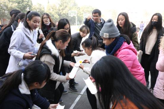 首先由主持人魏成龙简要讲述本次活动意义以及活动目的,接着屈咏梅与赵斌老师致辞并宣布活动开始。第一个正式活动名为“快速排列”。活动进行三轮并限定时间,开始阶段不熟悉规则的同学们频频出错,在第二轮后同学们终于掌握了游戏方法,各队伍之间竞争激烈,奋起直追。该游戏意义在于队员必须打破常规思维,锻炼每个队伍的协作能力,促进团队分工与协作。第二个活动名为“相信队友”。听了名字就知道活动二更需要队友之间的相互信任与相互协作。在规定的道路内放有四把椅子充当“炸弹”,一成员蒙眼向前,另一成员作指导,行走过程中不能撞到椅子。道路两旁同学围成人墙为队员加油助威,精彩纷呈。第三个活动“运送炸弹”。队员手持PC管运送乒乓球将球运送到终点用时短者为胜。活动中出现了一段小插曲,二队多次失败,一遍遍重来,但大家并未气馁,调整方式后重新出发,多次尝试后终将球运到终点,此活动为了告诉大家一个完美团队首先要学会聆听,学会服从,接下来就是执行。