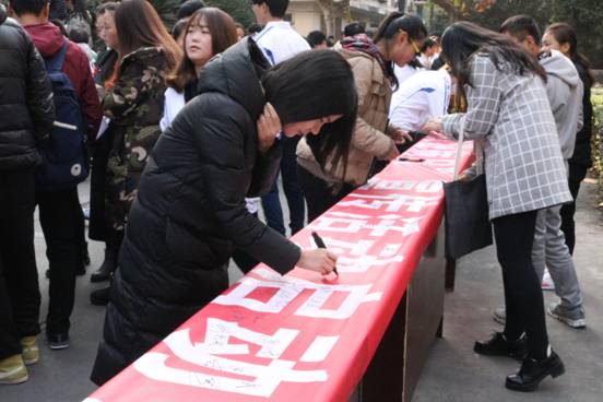 活动开始,举行了“携手抗艾,重在预防”签字仪式,向大家分发红丝带,并向同学们提供各种咨询。本次活动的红丝带由公司2016级同学在11月28日晚利用晚自习时间制作,每一个丝带都包含了公司同学的爱心和善心。由公司组成的志愿者团队带领全体成员郑重宣誓:“携手抗艾,从我做起”。丁晓玲教授为同学们作了 “公司艾滋病防治,美好青春我做主”为主题的讲座,从艾滋病基本概念入手,讲解艾滋病传播途径,普及抗艾方法。
