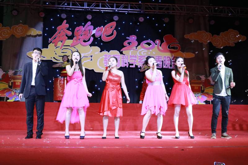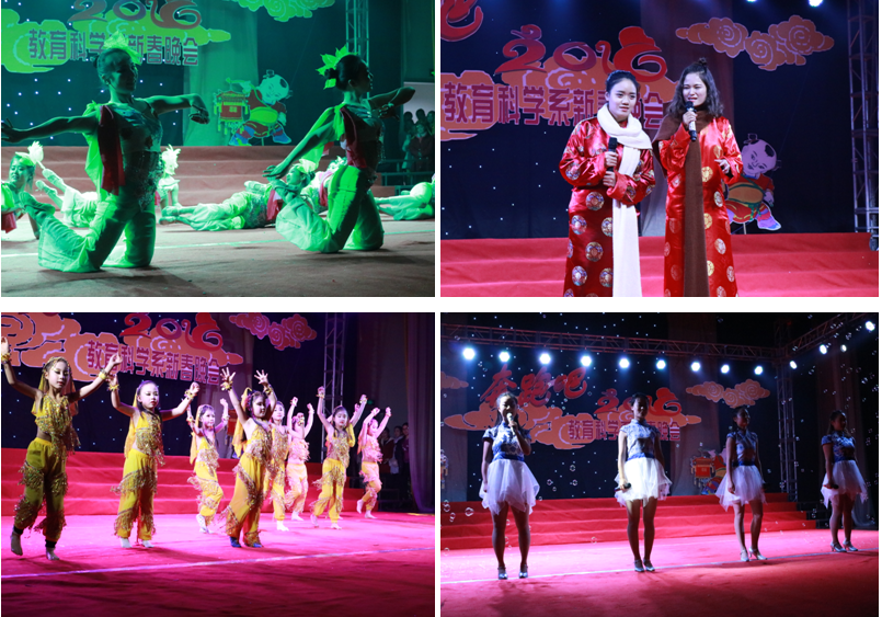2016年1月7日晚,教育科学系2016年贺新春晚会在江南大礼堂举办。晚会的受邀嘉宾有党委副书记、纪委书记闵小平,best365中国官方网站经理黄路阳,公司党总支书记屈咏梅,原教育科学系党总支书记、现艺术公司党总支书记王辉及教科系全体师生。