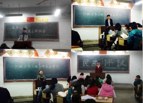 评议分别在各班自习室开始,首先是2014级各班班长对上半学期工作做总结,概述了2014—2015上半学期各班组织的几次班会以及趣味运动会,还有义务劳动等班级活动,总结了通过这些活动取得的成效和得到的收获及进步。同时,也各自对自身工作情况进行了自我评定,有评价了自己的优点也有指出自己的不足,虚心征求了同学们的意见。接着,各班团支书也对上半学期团支部工作做了简单总结,有的还向同学们提议一定要多多给团支部工作提出宝贵意见,从而改进不足之处更好的为班级和同学们服务。随后,各班学习与生活委员、体育委员、组织及宣传委员也分别汇报了各自在上半学期的各项工作,表述了各自愿意做好本职工作并虚心接受同学和老师的意见,带领班级取得更大进步的决心。