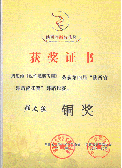 2014年10月2日至6日,陕西省第四届荷花杯舞蹈大赛于陕西师范大学音乐厅隆重举行。比赛包括独舞、双人舞、三人舞、群舞等。比赛过程中,选手们使出了浑身解数,将自己的参赛节目以丰富多彩的方式,尽善尽美地呈现在观众面前,充分体现了艺术风采。整场比赛始终高潮迭起,出彩的表演层出不穷,观众视觉和听觉上都得到了充分的享受,热烈的气氛始终贯穿于参赛者和观众之间,形成了良好的互动。