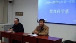 2014年11月27日(星期四)下午四点二十分,我系在1429室召开了2014-15学年度第一学期期中教学检查员工座谈会,会议由教学副主任权大学副教授主持,系主任黄路阳教授、学工主任办赵斌,系办主任王胜文参加了会议,我系学前教育和小学教育两个专业,2014级、2013级、2012级三个年级共22个班的班长或学习委员代表该班级参加了座谈会。