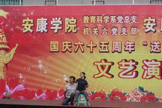 20014年9月26日,教育科学系党总支、机关六支部与安康监狱共同举办了“送文化进高墙”为主题的“五联共建”活动。此次活动适值建国65周年国庆前夕,以文艺演出的形式,加强五联共建活动,全面践行群众路线教育实践活动,为安康监狱全体干警送去节日的问候,对服刑人员送去社会的温暖,鼓励他们认真改造,树立积极的人生态度,增强重回社会的信心。