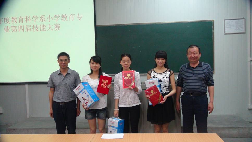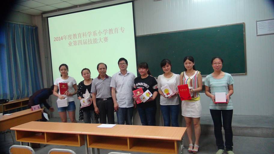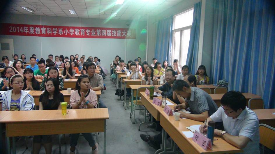 2014年5月31日上午九点,我系小学教育专业第四届教学技能大赛决赛于1016教室顺利举行。教育科学系主任黄路阳、党总支书记王辉、教学副主任权大学、小学教研室主任王贞惠、学前教研室主任韩歌萍、小学教研室教法指导教师刘莉、陈珂对比赛进行了全程观摩、指导。安康市小学教育教研组组长侯曙光、安康市第二小学董事长谭洪模、安康市教研室教研员李志担任了本次大赛的特邀评委。