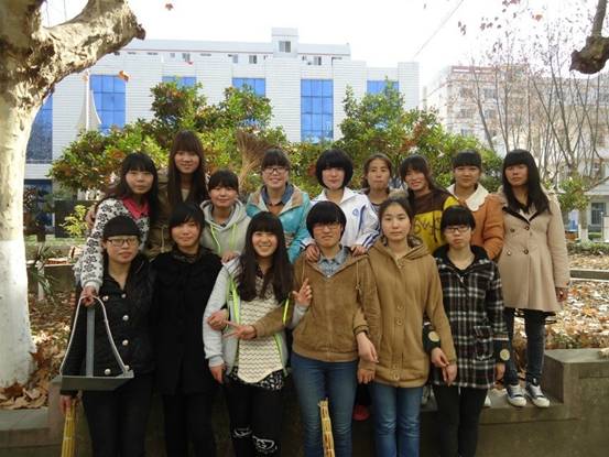 小教文一清扫绿化带同学合影