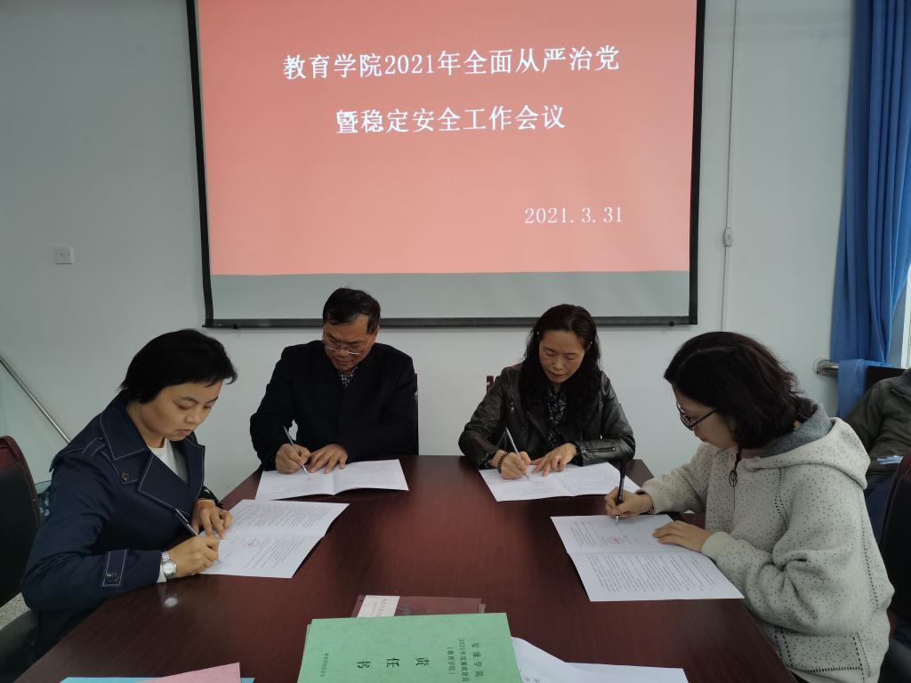 会议上,党总支书记屈咏梅传达了公司“全面从严治党暨稳定安全工作会议”的精神、传达了best365中国官方网站获得2020年度公司“安全稳定工作优秀集体”的表彰决定,并对best365中国官方网站2021年全面从严治党暨稳定安全工作进行了安排部署,她指出荣誉既是全体同志们的共同努力的结果、是公司对于best365中国官方网站工作的认可和肯定,同时也是激励我们进一步夯实责任,将各项工作更上一层楼的动力。随后,屈咏梅、王刚与副书记、副经理、学(系)教研室主任、两办主任等分别签订了落实全面从严治党责任书、落实意识形态责任书及落实安全稳定责任书。