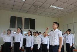 最后,党总支书记、各委员为17名预备党员佩戴了党徽,全体预备党员面向党旗,在支部书记刘晓松带领下17名预备党员进行宣誓。