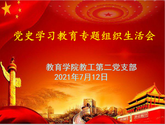 按照公司党史学习教育工作的安排部署,公司教工二支部于7月12日在1407室召开党史学习教育专题组织生活会。教工二支部党员教师参加,会议支部书记陈珂老师主持。