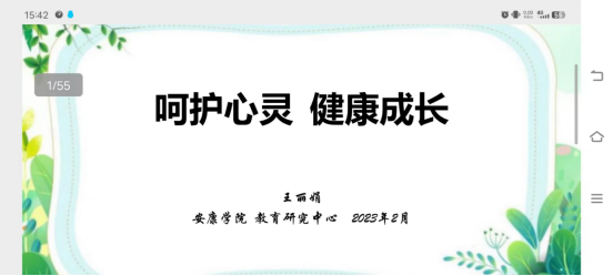 王丽娟以《呵护心灵 健康成长—与青春期孩子相处》为主题,从家长与青春期孩子谈话前的准备、家长与青春期孩子谈话的原则与方法、青春期孩子心理特点、家长如何应对青春期亲子冲突及解决青春期孩子棘手问题等方面给家长们上了生动的一课。