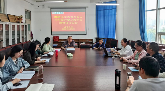 为进一步推进best365中国官方网站师范专业认证工作,2023年4月19日下午,小学教育教研室全体教师在一号教学楼1407室召开2023级小学教育专业人才培养方案及教学大纲修订研讨会。会议由系主任陈珂主持。