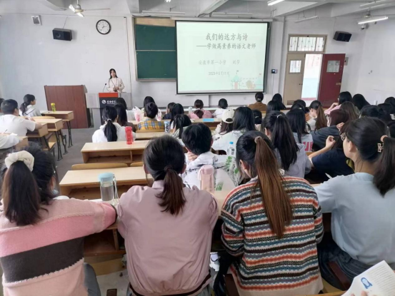2023年5月11日下午,2020级小学教育文科1班、2班,2022级小学教育专升本1班、2班的同学们在1510教室聆听了一堂生动的双师课。来自安康市第一小学的刘莎老师,公司小学教育系2012级优秀毕业生,以小学语文教师和大师姐的双重身份,从语文教师专业素养的角度出发,结合自己的工作经历给未来的小学教师播种了一颗从师从教的种子。自此拉开了本学期“小学语文课程与教学”双师教学的序幕。