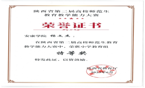 本学期通过数学教法课理论与实践结合训练员工的试讲和说课能力,其中3名员工获得校级师范生能力比赛前三名好成绩,其中杨文杰同学获得省师范生教学能力大赛特等奖。此奖项也激励其它在校员工不断提高自身教学能力。